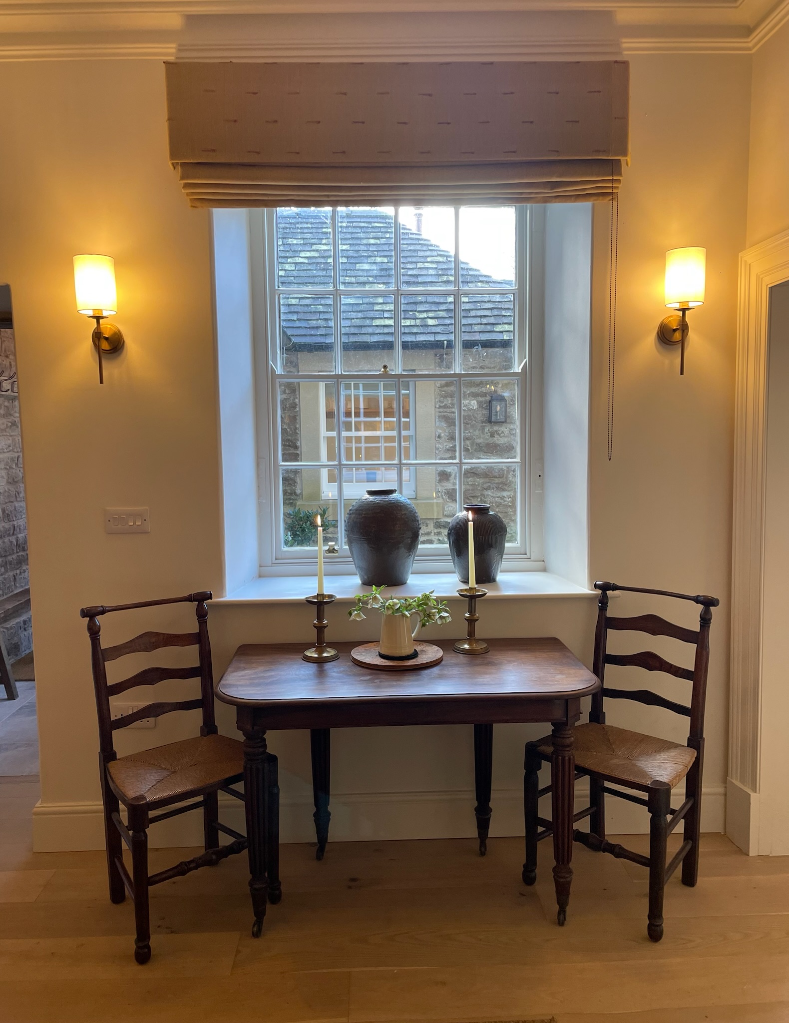 The cottage has been fully renovated and extended to provide a charming retreat just off the village centre. The cottage has a fully fitted bespoke kitchen, fitted with state-of-the-art appliances, Belfast sink and feature oak beams. The stone and glass entrance hall connects the kitchen to the living/dining room with its’ high ceilings, original sandstone fireplace, log burner and a dining area. This connects directly to a double bedroom with a beautiful king size bed, a huge double window and a separate bathroom and walk-in shower, both en-suite. Outside the cottage has an enclosed courtyard, perfect for a morning coffee or some alfresco dining. Beside the gate into the courtyard is an off-street parking area. The cottage is step free access/mobility friendly and takes pets by appointment.